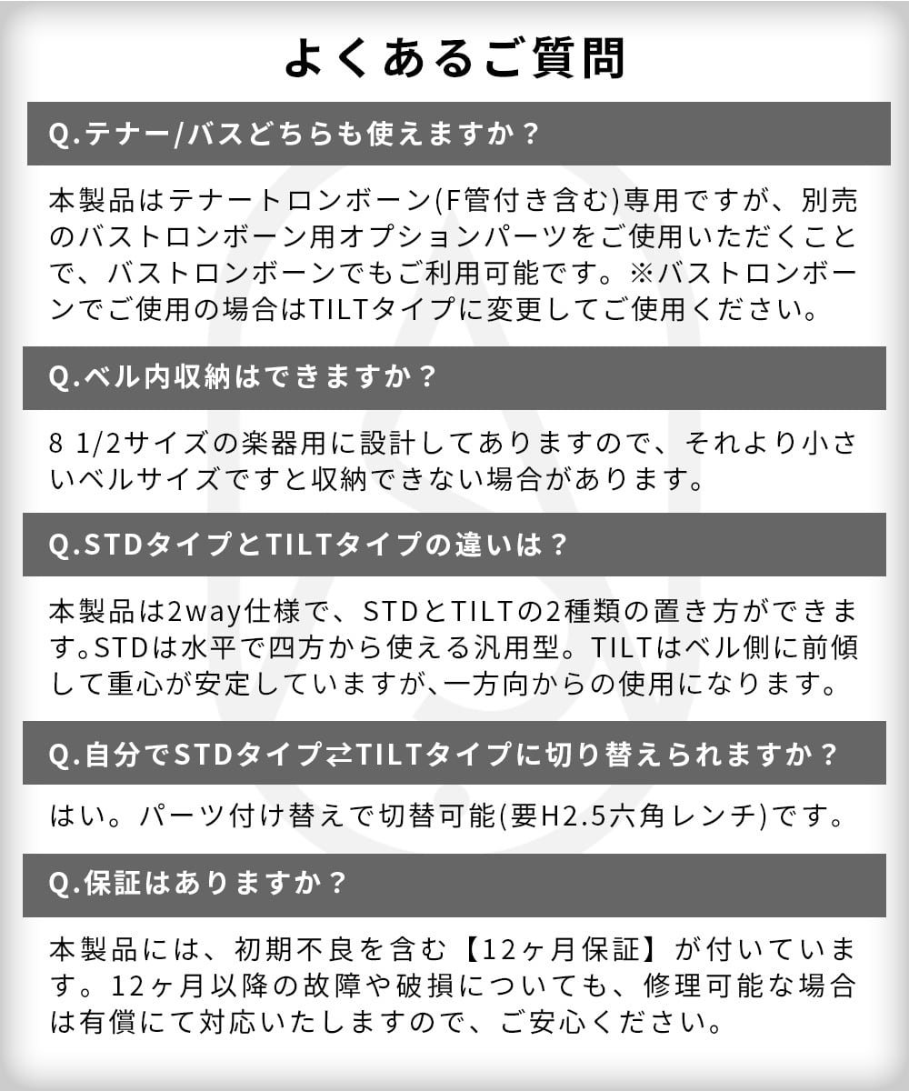 ★本製品はテナートロンボーン(F管付き含む)専用ですが、別売のバストロンボーン用オプションパーツをご使用いただくことで、バストロンボーンでもご利用可能です。
