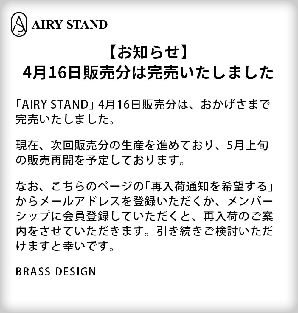 「AIRY STAND」 4月16日販売分は、完売いたしました。