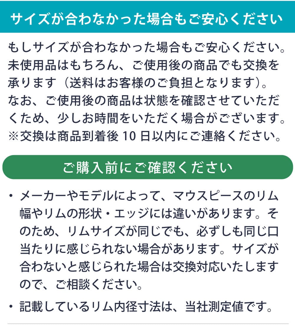 ※内径は0.5mm刻みですので、普段使っているマウスピースに近いサイズをお選びください。